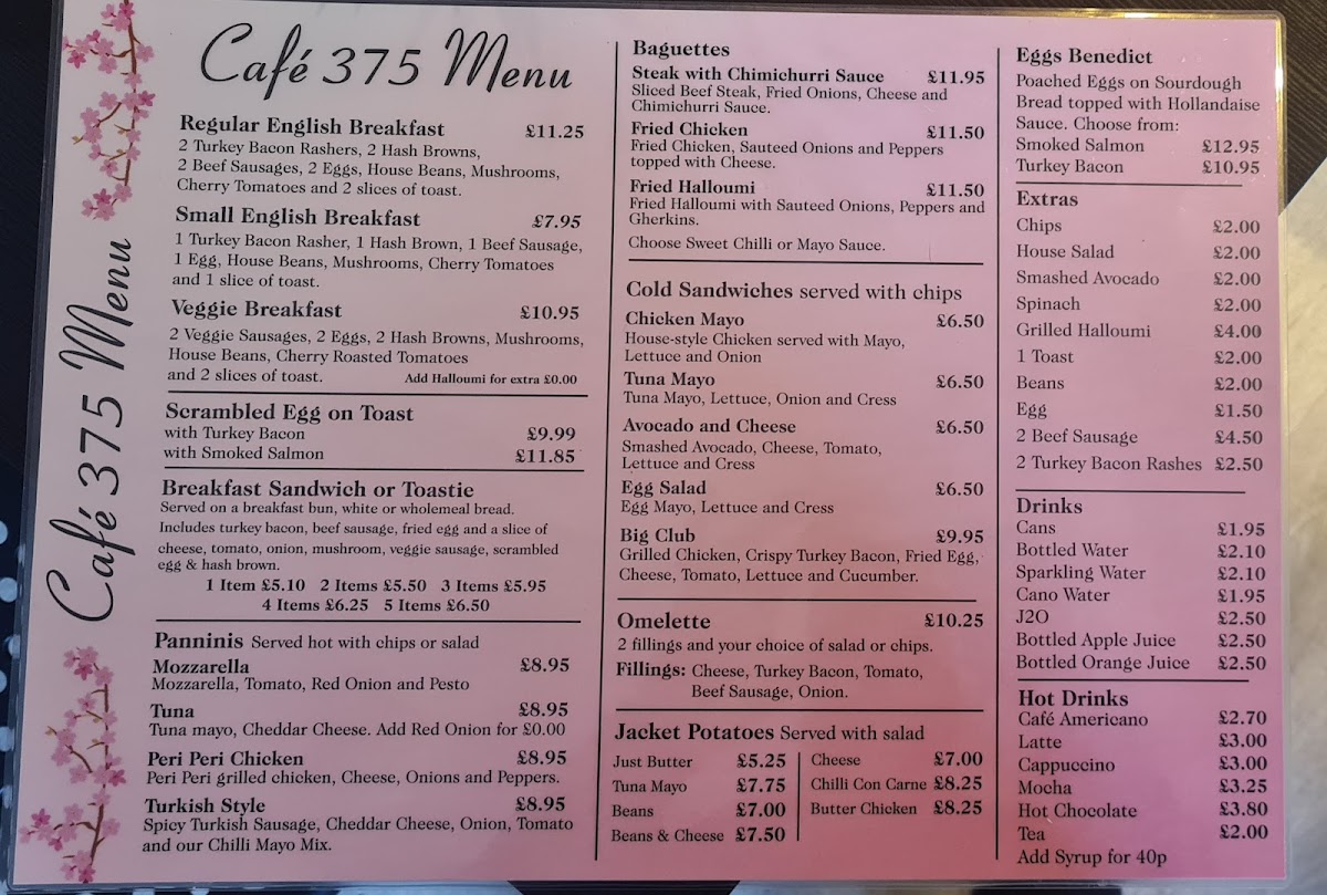 - Drinks: Refresh yourself with a selection of soft drinks starting at £1.95.